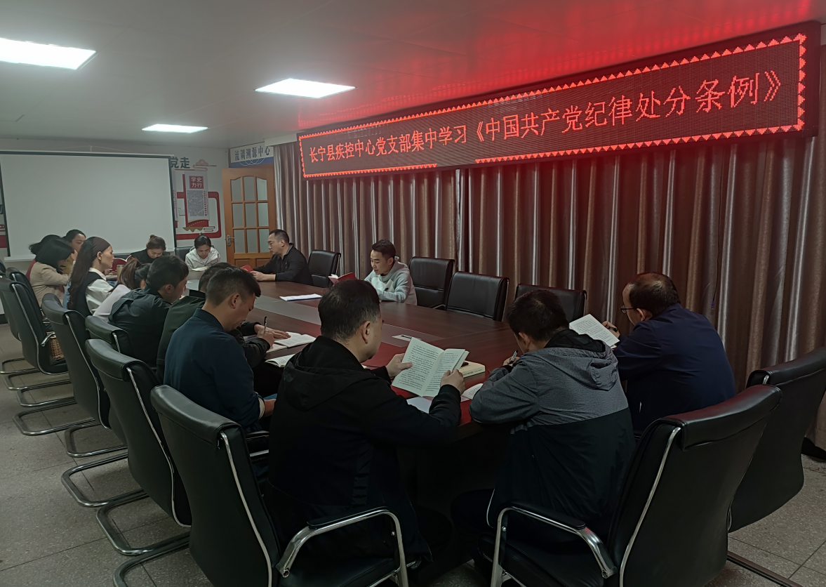 4月24日下午,为进一步规范党员干部遵守党规党纪的思想意识,疾控中心党支部组织召开支部党员大会,集中学习《中国共产党纪律处分条例》。