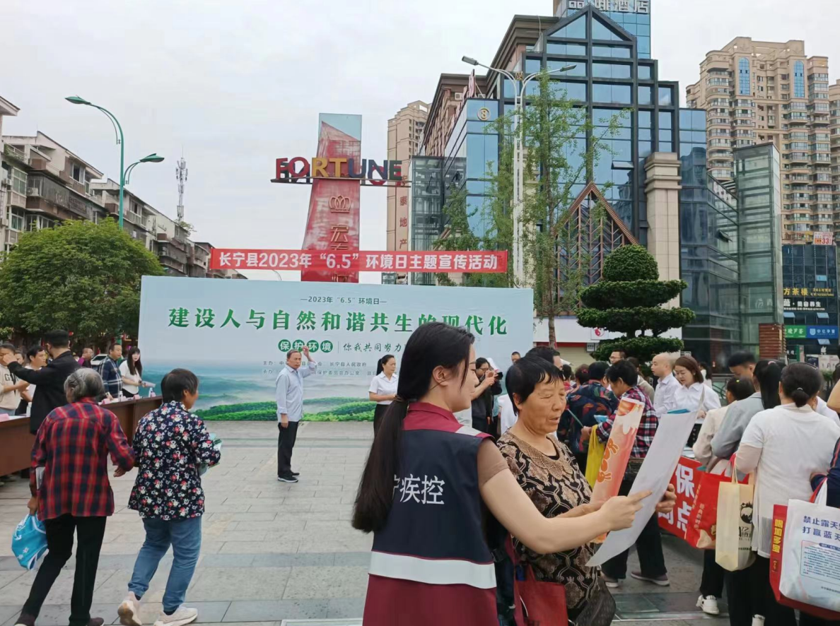 在宣传活动期间,长宁县疾控中心卫生科工作人员紧紧围绕宣传主题,积极组织专业人员开展现场咨询服务,发放科普和法律宣传资料,利用横幅、宣传画报、版报,组织人员在流动人口密集区域开展活动,开展形式多样的“世界环境日”宣传教育活动。