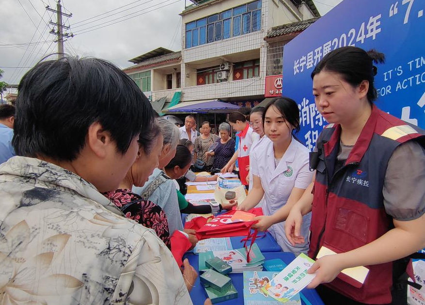 为提高公众对病毒性肝炎的认识,普及肝炎防控知识,并号召广大居民通过接种疫苗、早期筛查和规范治疗等措施战胜病毒性肝炎。7月25日上午,由县卫生健康局组织县疾控中心、县人民医院和竹海镇中心卫生院利用场镇赶集日在竹海镇农贸市场入口处联合开展以“消除肝炎,积极行动”为主题的第14个世界肝炎日集中宣传活动。