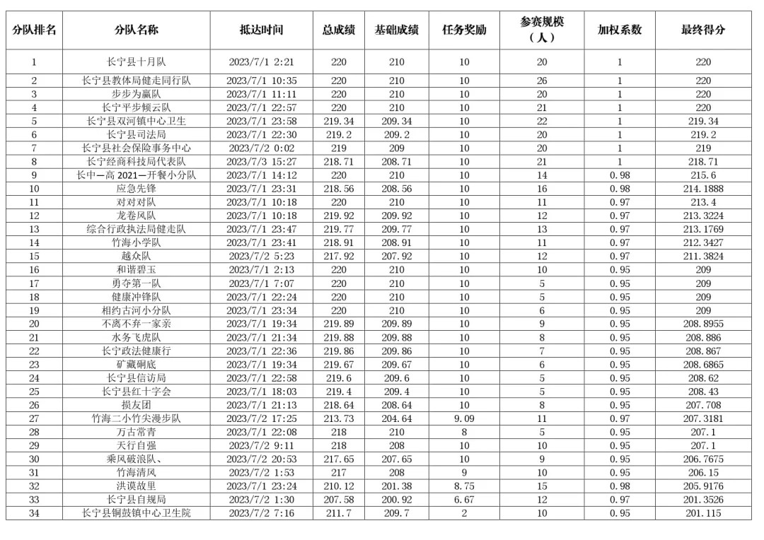 2023年“万步有约”健走激励大赛长宁县参赛队伍成绩排名