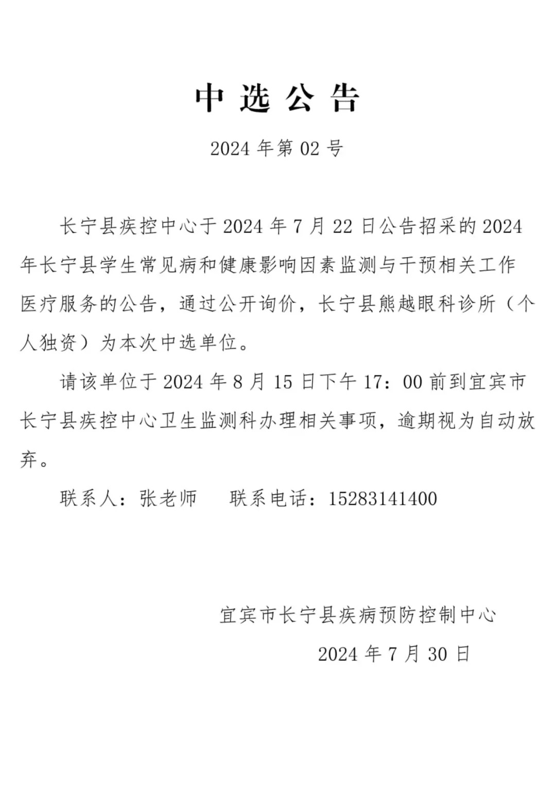 长宁县疾病预防控制中心关于向社会购买2024长宁县学生常见病和健康影响因素监测与干预工作的公告