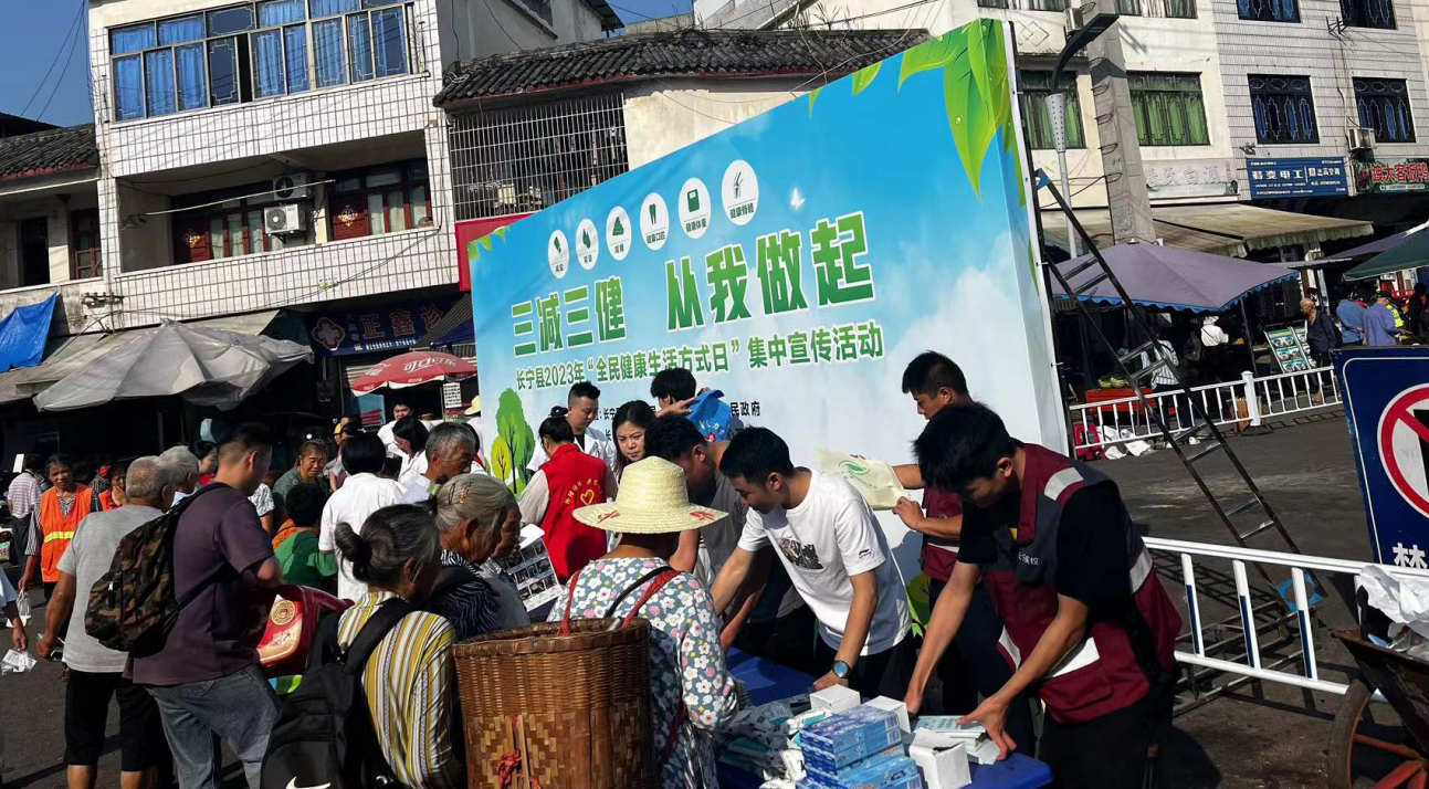 为了提高全民健康素养和健康水平,我县于9月1日上午在竹海镇农贸市场开展了第17个“全民健康生活方式行动日” 宣传活动,此次活动由长宁县卫生健康局、竹海镇人民政府主办,长宁县疾控中心、竹海镇中心卫生院承办。本次活动的主题是“三减三健”从我做起,旨在引领公众践行健康文明的生活方式,倡导每个人做自己健康第一责任人理念,践行“三减三健”。
